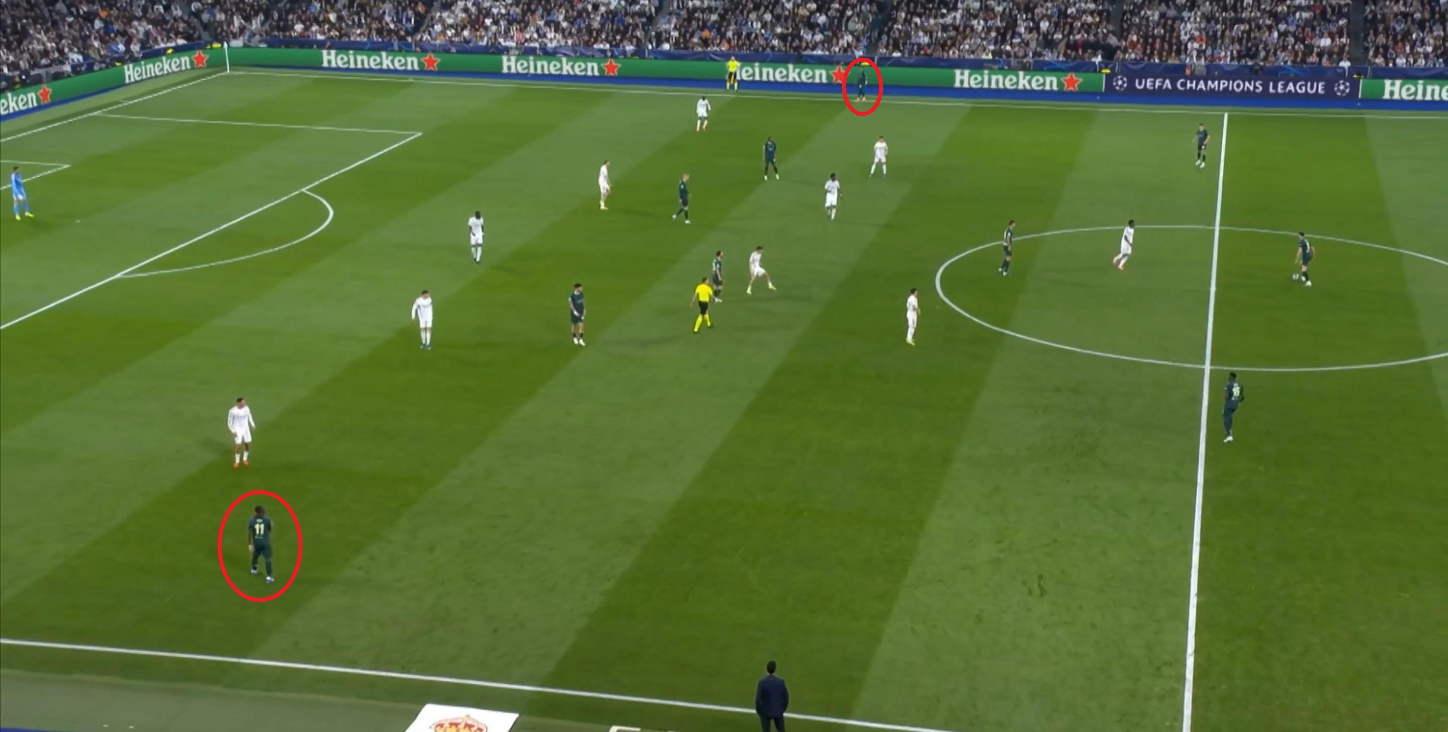 他们大部分的回合还是在防守,这一点从巴尔韦德多次随着奥赖利落入防线,多次帮着阿诺德来防守多库就可见一斑了,但就是在这种情况下,曼城的进攻低效,在中高位覆盖不了后腰身侧的空间,从这里就被皇马带回去。