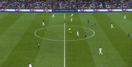 所以在下半场,皇马的表现依然稳健,还是通过人数足够的防守来构筑基础,在此之上进行次数有限,但威胁不小的反击,效果依然不错: